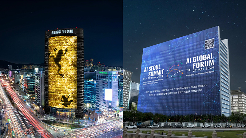 거대한 건물의 외벽이라도 한순간에 거대한 미디어파사드로 바뀌는